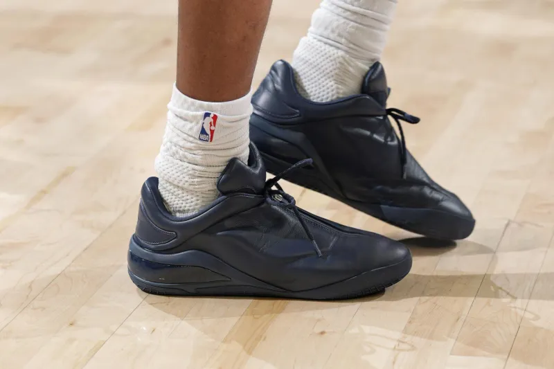 比赛中,亚历山大上脚墨蓝色Converse Shai001 Premium“Ink”。